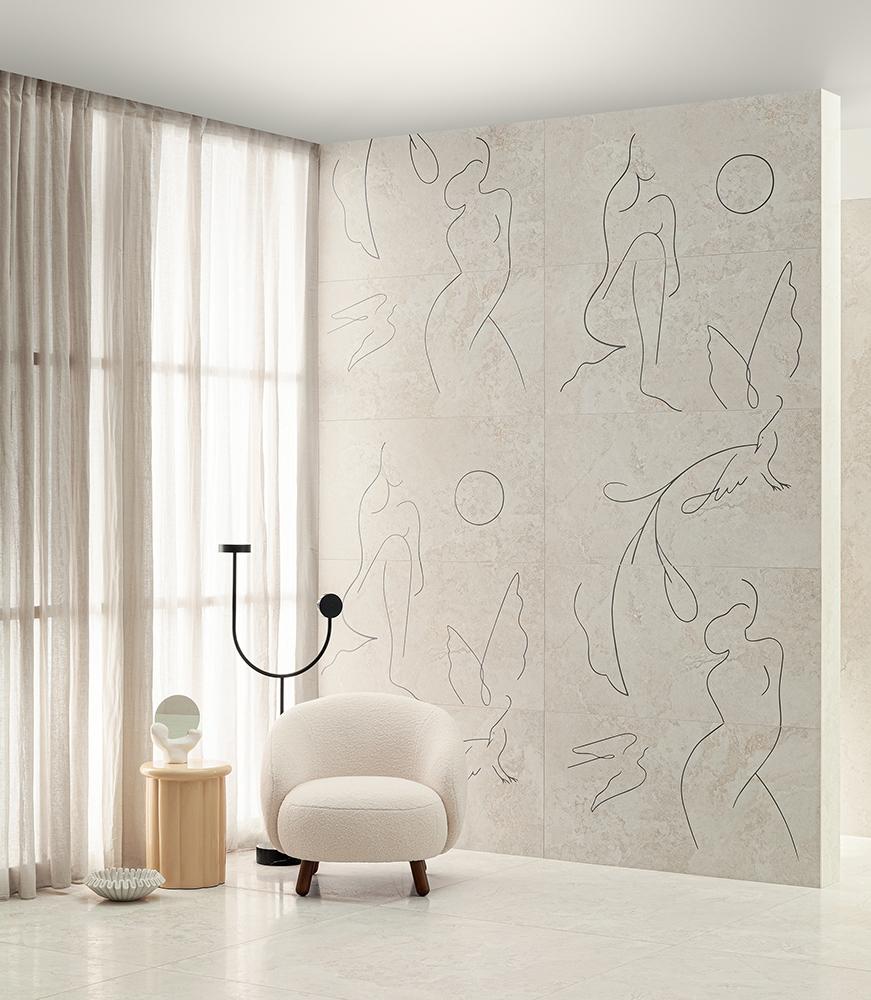 Kolekcja Teri to artystyczna opowieść o kobiecej naturze, uchwycona w subtelnych, przenikających się sylwetkach, niczym malowanych jednym pociągnięciem pędzla. Delikatnie mieniąca się strukturalna powierzchnia podkreśla wyjątkowy charakter wzoru, wzbogaconego o eteryczne szkice.