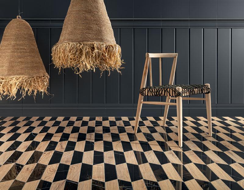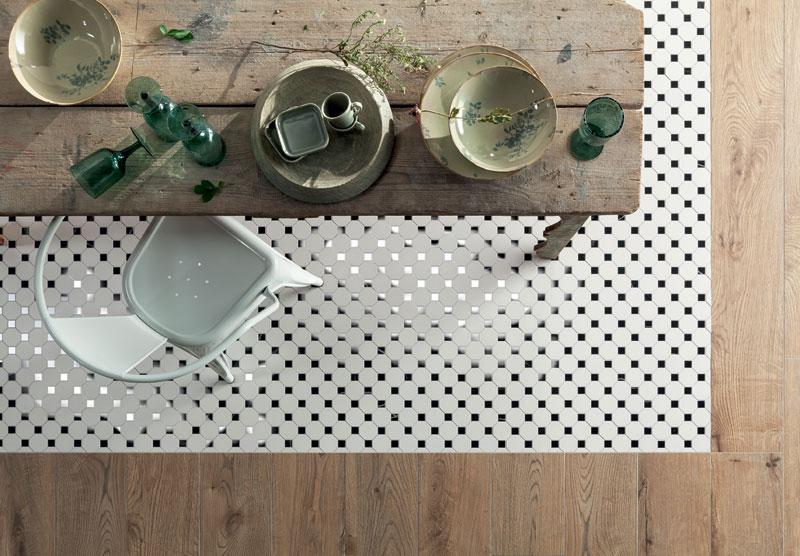 Głównym wyróżnikiem kolekcji są gresowe płytki inspirowane efektem spłowiałego, wytartego jeansu. Ich wzornictwo czerpie z orientalnych motywów i etnicznych faktur, a całość uzupełniają drewniane akcenty, podkreślające naturalny charakter stylu.