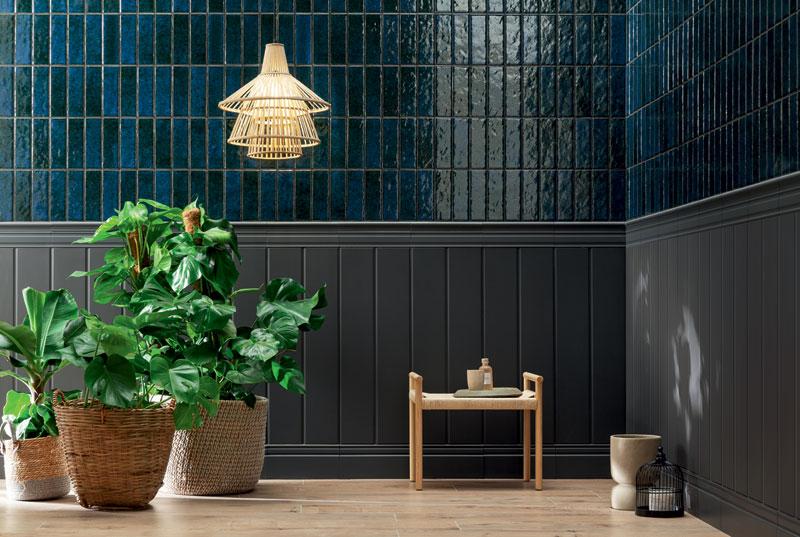Głównym wyróżnikiem kolekcji są gresowe płytki inspirowane efektem spłowiałego, wytartego jeansu. Ich wzornictwo czerpie z orientalnych motywów i etnicznych faktur, a całość uzupełniają drewniane akcenty, podkreślające naturalny charakter stylu.