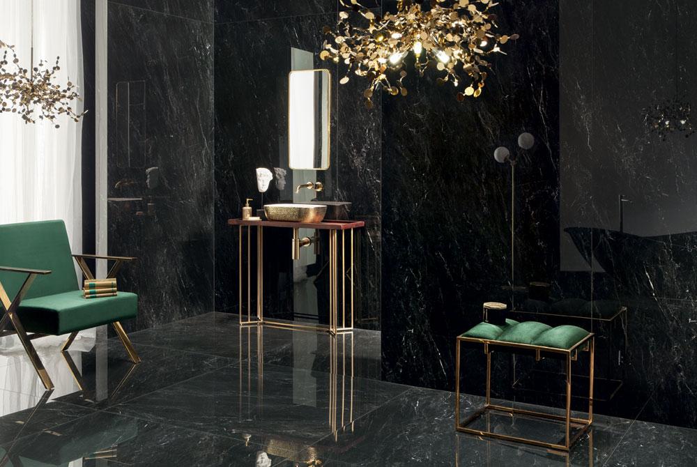 Regal Stone to wyjątkowa gra kontrastów – sieć białych nici subtelnie rozświetla ciemną powierzchnię gresu, inspirowaną tradycyjną sztuką kamieniarską. Kolekcja emanuje luksusem w stylu glamour, przywołując elegancję i zmysłowość złotej ery Hollywood. To wyrafinowany blask i wysmakowana forma, które nadają wnętrzom ponadczasowy charakter.
